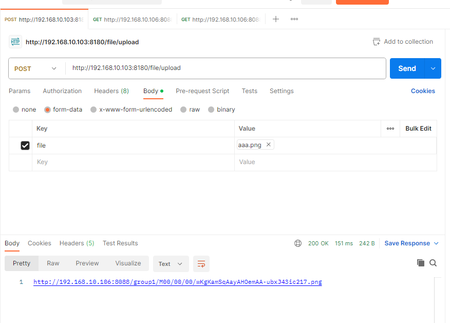 String url = fastDFSClientWrapper.uploadFile(bytes, fileSize, extension);