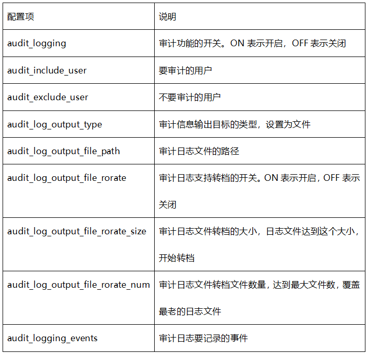 AntDB-M的审计功能支持配置,通过不同的配置项,可以灵活控制审计功能的开启、审计的事件、审计的用户、审计日志文件的路径和大小等。