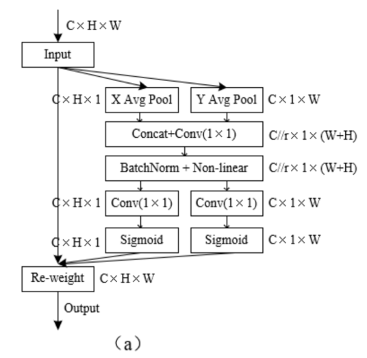 个通道处的输入特征。在下文中,输入特征可以对全局特征信息进行编码,并帮助模型分别沿着两个空间方向捕获全局信息,这两个方向在没有卷积的情况下。