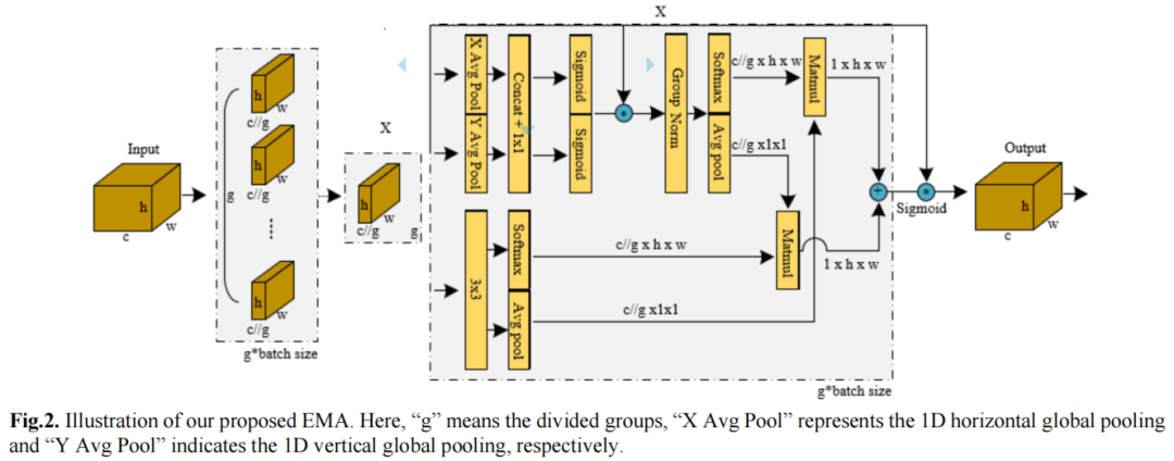 函数。它捕捉像素级的成对关系,并突出显示所有像素的全局上下文。EMA的最终输出与的大小相同,这对于堆叠到现代架构中是高效而有效的。