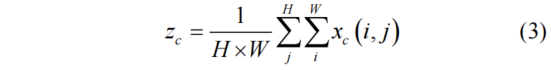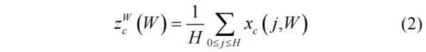 中的水平维度方向对全局信息进行编码的1D全局平均池化可以表示为