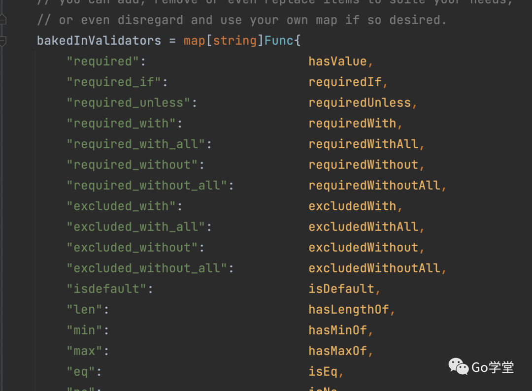 那么v又是什么对象呢?首先我们知道v是经过断言,转换成了 *validator.Validate类型。validator.Validate是使用的第三方包github.com/go-playground/validator/v10。