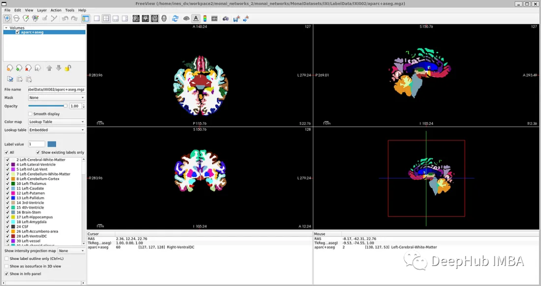 IXI数据集由581个健康受试者的未标记MRI T1扫描组成。这些数据是从伦敦3家不同的医院收集来的。使用该数据集的主要缺点是标签不是公开可用的,因此为了遵循与研究论文中相同的方法,本文将使用FreeSurfer为这些MRI T1扫描生成分割。