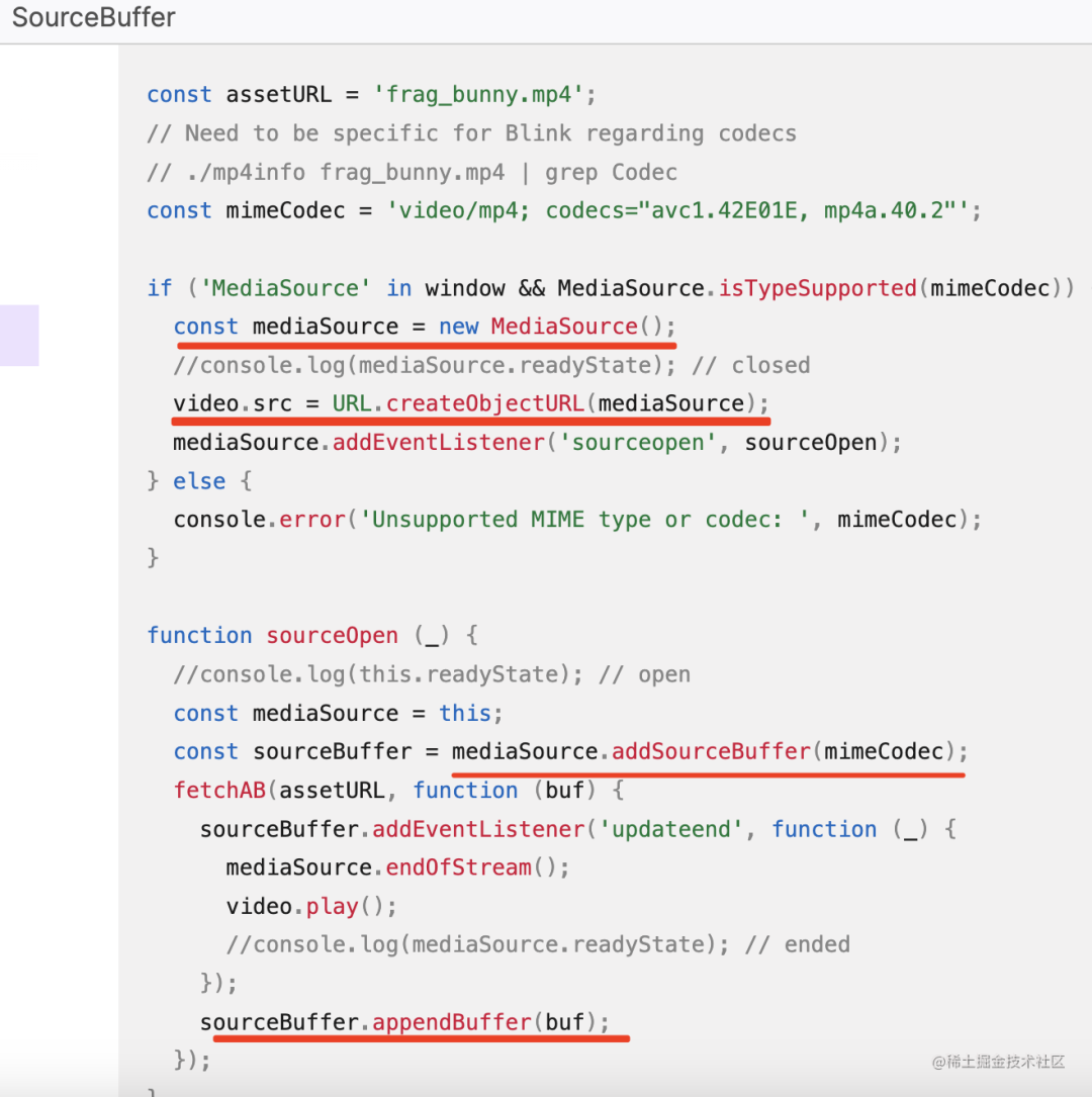 浏览器有一个 SourceBuffer 的 api,我们在 MDN 看一下: