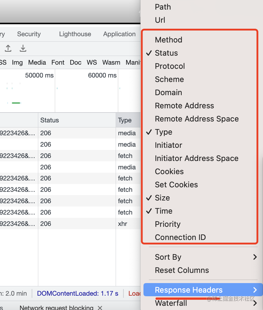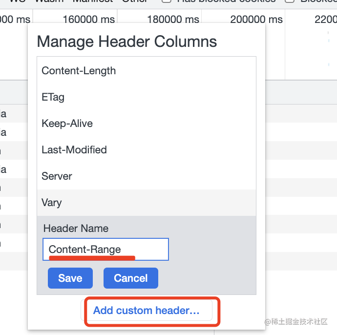 通过自定义列在列表中直接显示了 Content-Range: