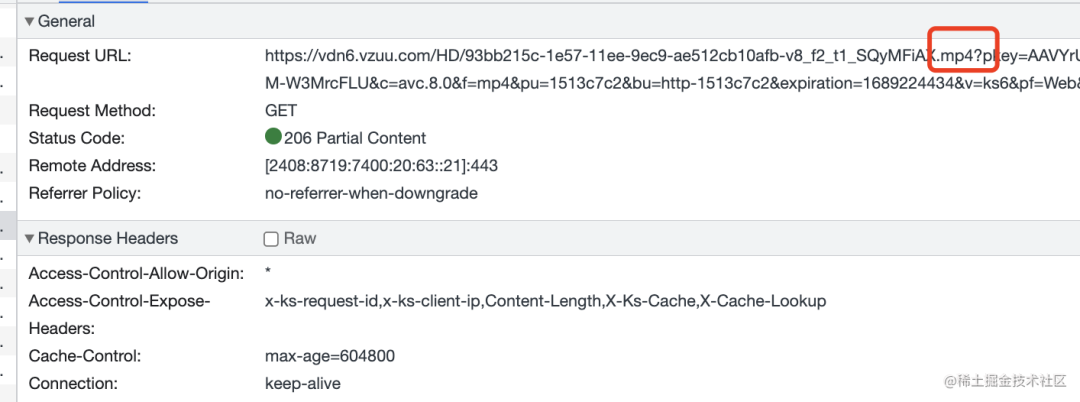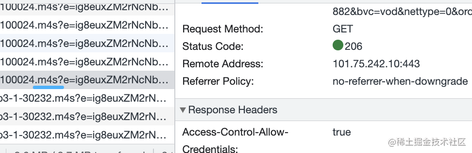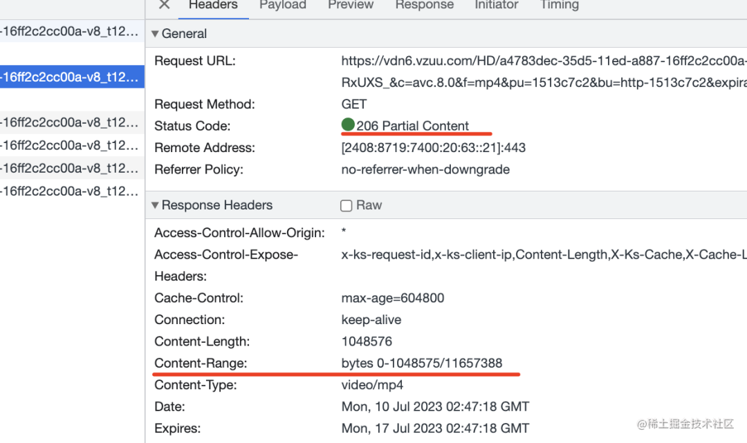然后点开状态码为 206 的请求看一下: