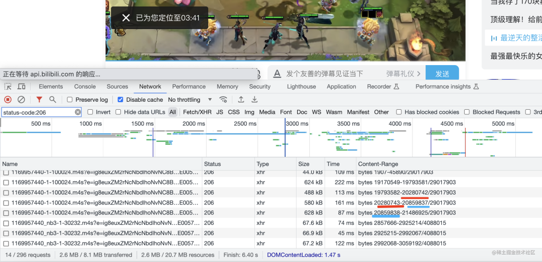 再来看看 b 站,它也是用的 range 请求的方式来下载视频片段: