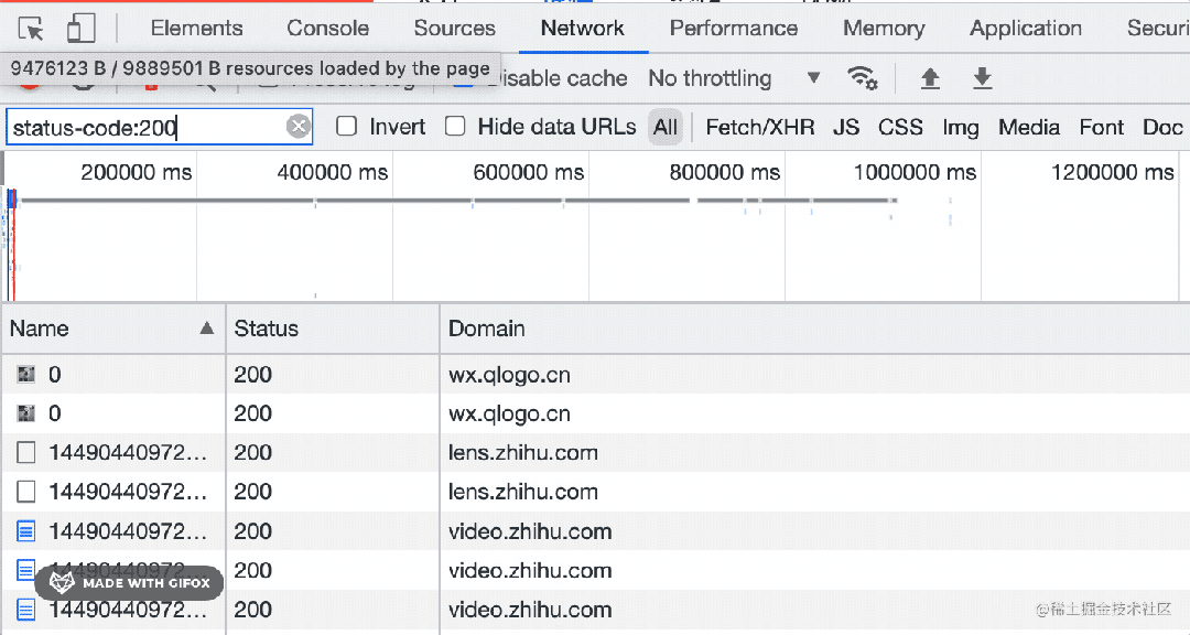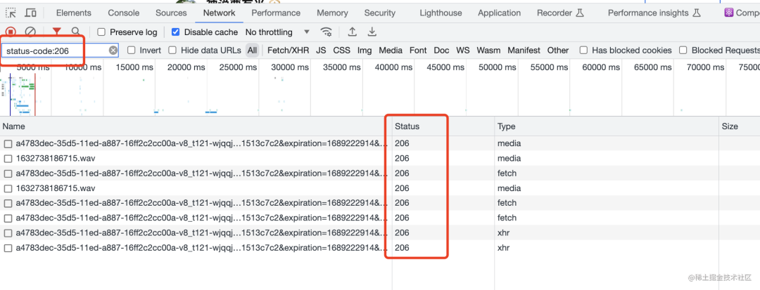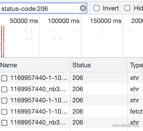 我们通过 status-code 的过滤器来过滤出了 206 状态码的请求。
