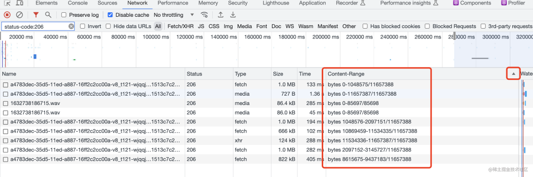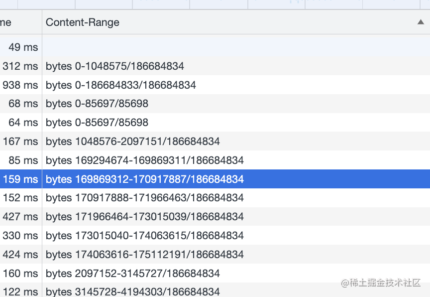 我们需要分析下 Content-Range,但是一个个点开看不直观。