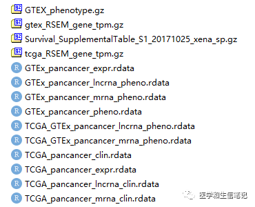 如果不想自己跑一遍,或者电脑配置太低(需要至少16GB运行内存)总是失败,也可以在公众号后台回复pancancer,即可获取整理好的rdata文件以及从XENA下载的4个文件。