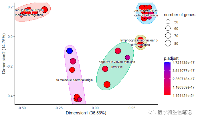 可以把富集分析结果进行降维,画出降维之后的图形。