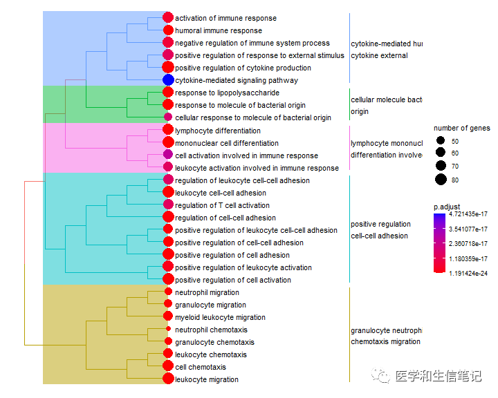 把富集结果通过聚类树的形式展示,使用函数treeplot实现,支持enrichResult、gseaResult、compareClusterResult3种结果.