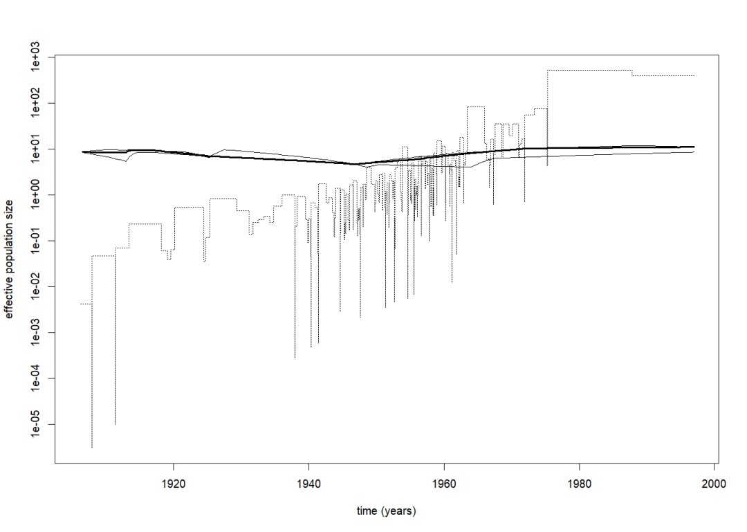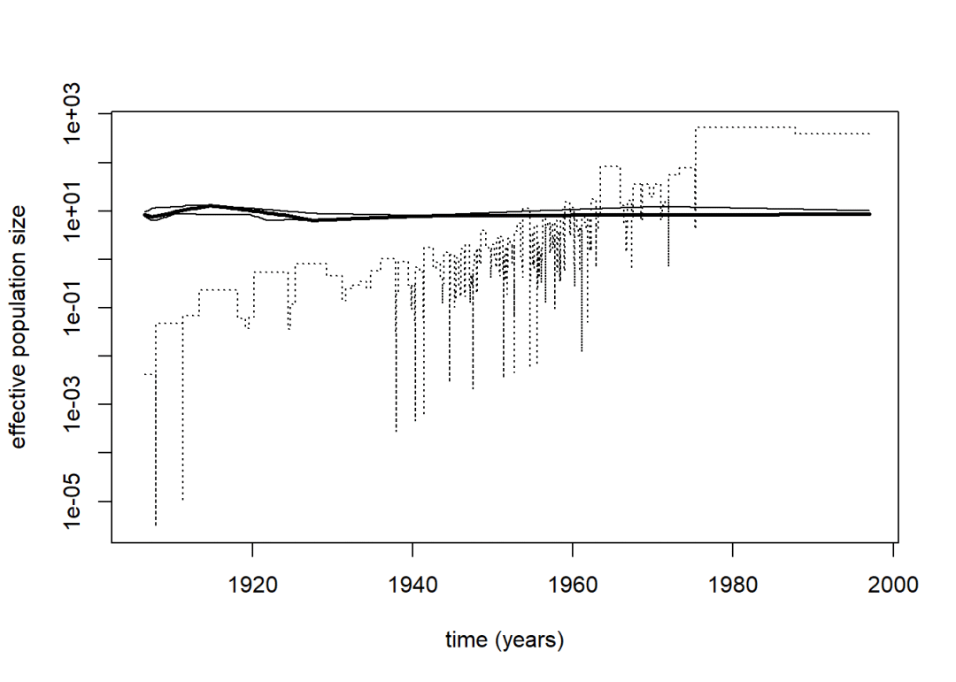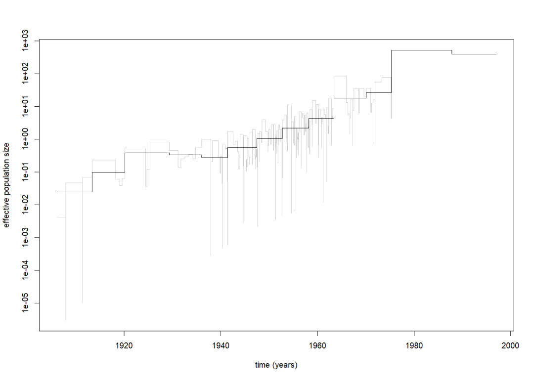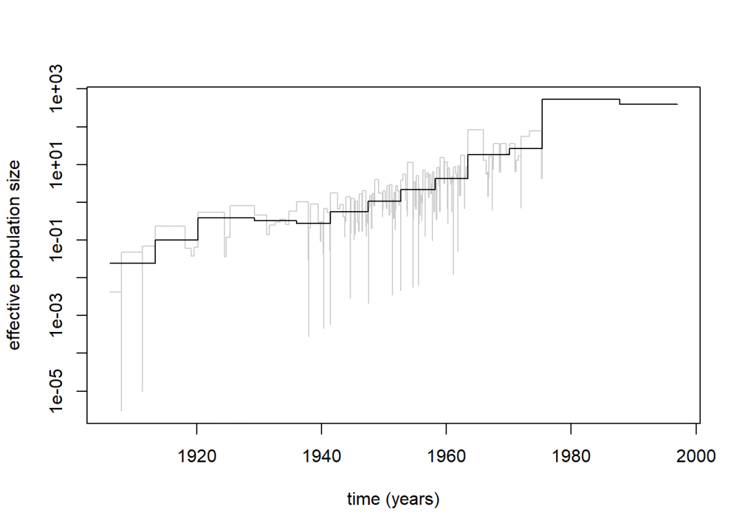 # mcmc.popsize函数 - 可逆跳跃MCMC (马尔可夫链蒙特卡罗) 推断群体数量史 (Demographic History)