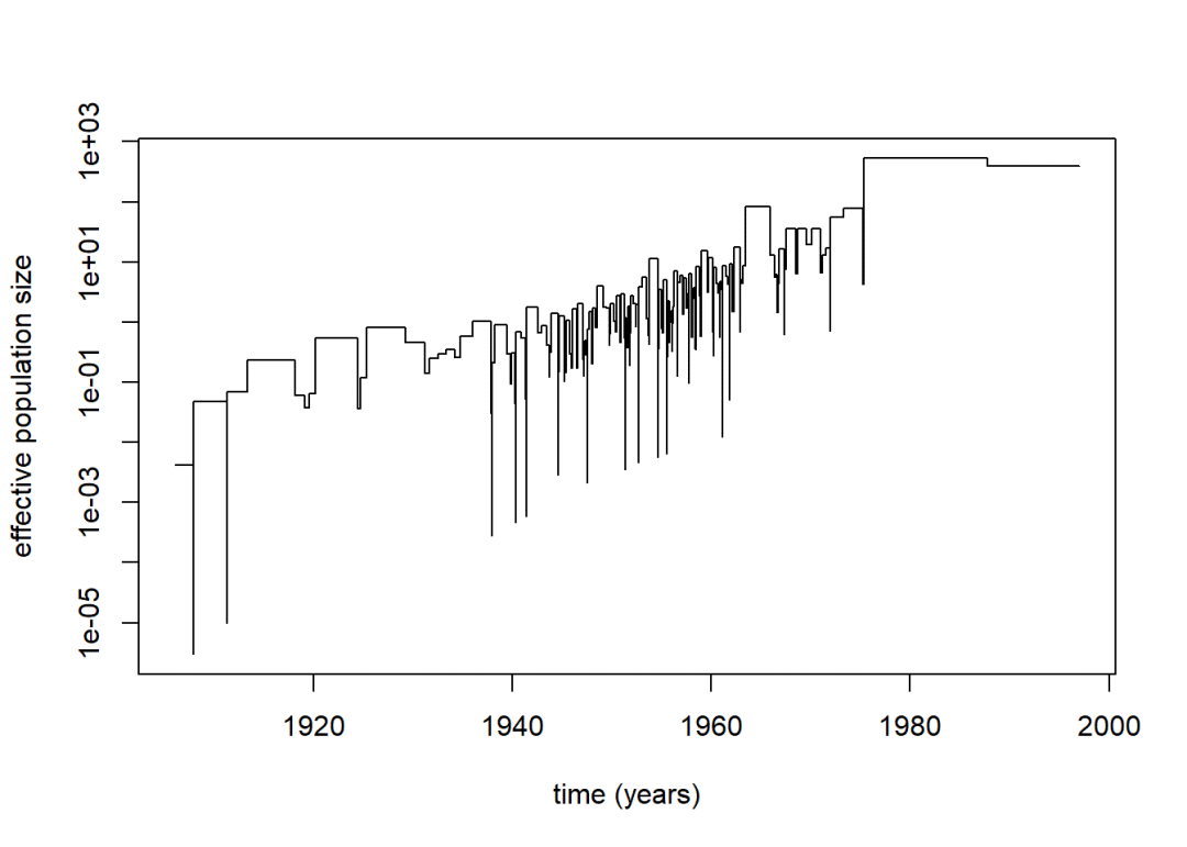 lines(popsize, show.years=TRUE, subst.rate=0.0023, present.year = 1997)