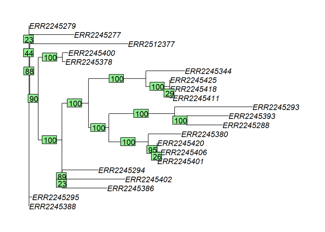 ## Calculating bootstrap values... done.## get proportions of each clade: