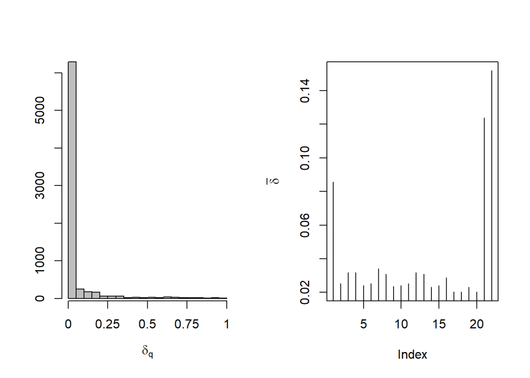 delta.plot(dna.bin.dist, k = 20, plot = TRUE, which = 1:2)