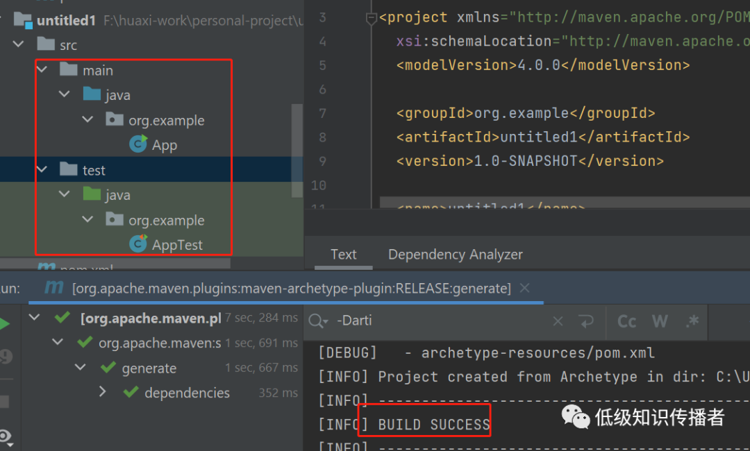 下面这个App.java的$package占位符,我们在命令里没有显式传递,是maven获取了-DgroupId=com.example的值作为其默认值。
