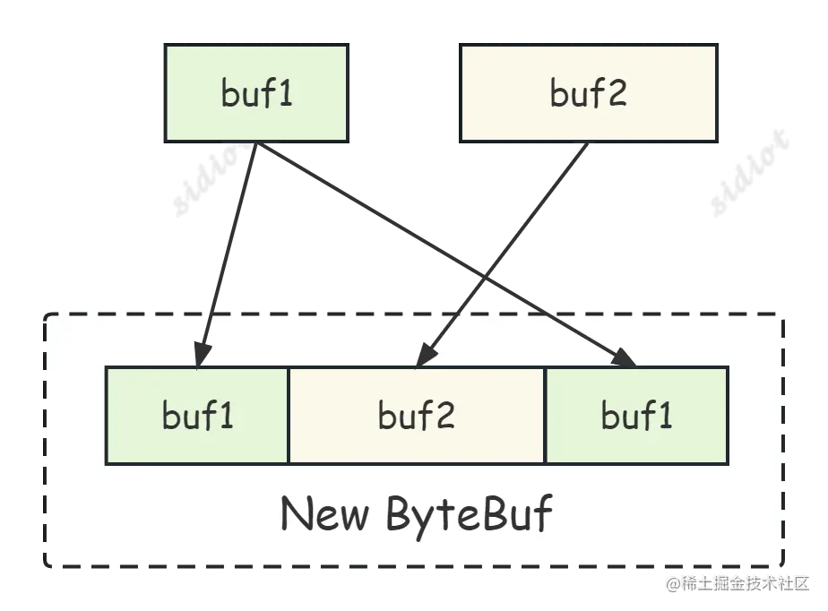 CompositeByteBuf 可以将多个 ByteBuf 合并为一个逻辑上的 ByteBuf。而 addComponents