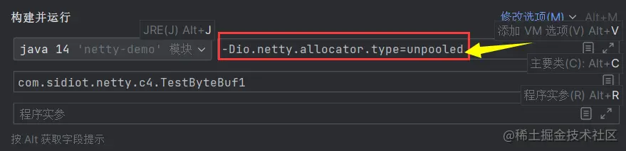 这里我们使用非池化功能进行测试,依旧使用的是上面的测试代码 testCreateByteBuf()