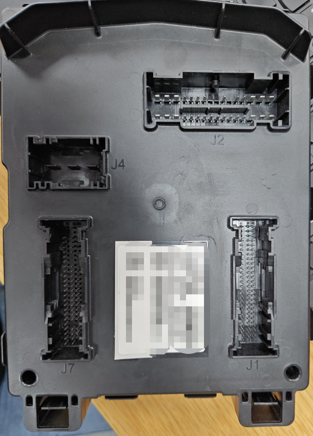 如BCM(车身控制器),其外形如图 2所示。车身控制器是一个以单片机为控制核心的零部件,其特点是引出了多达上百的输入输出口[1],以满足众多车身电器的连接。这些输入输出的接口,接收或者输出的是传感器、电机等ECU的原始控制信号,比如控制电机用的PWM或者电平信号,比如控制开锁关锁的电平信号等。没有线束,没有插头,如何为其供电呢?