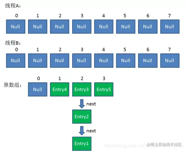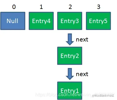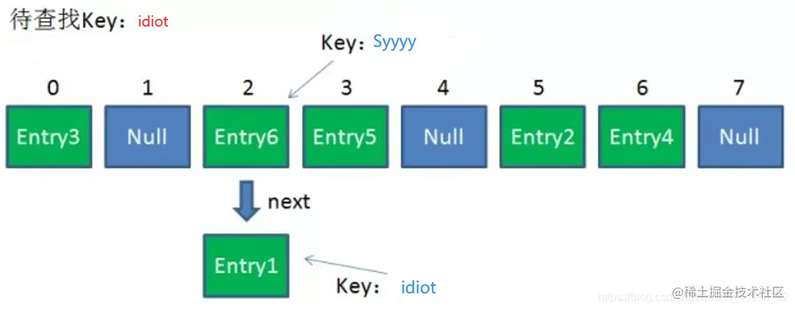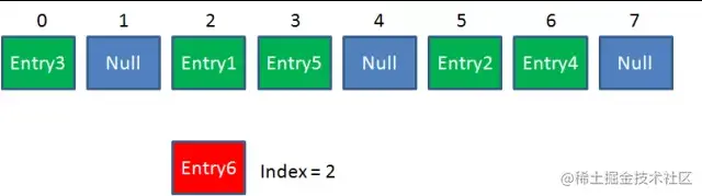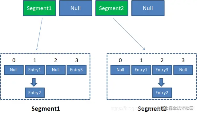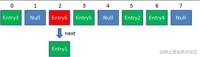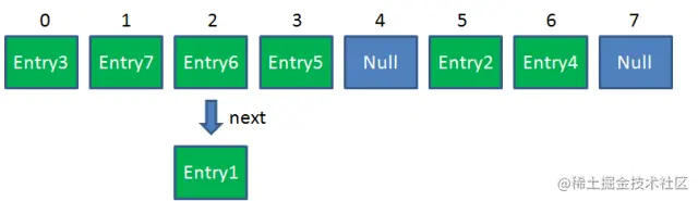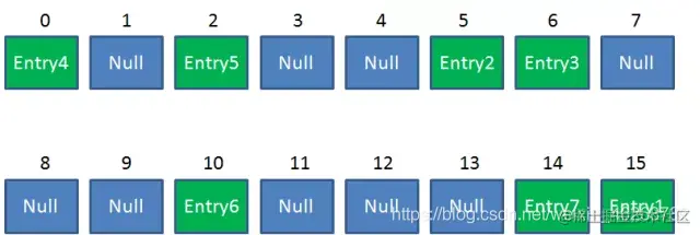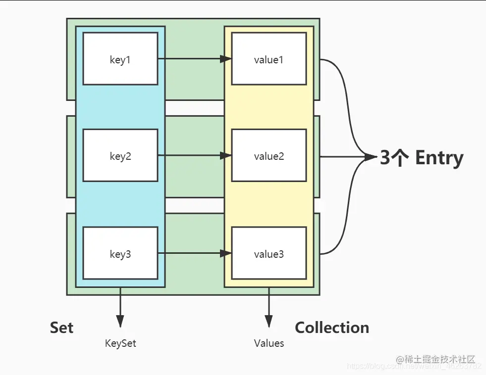 上图看起来像是数据库中的关系表,有类似的两个字段,KeySet(键的集合)和 Values(值的集合),每一个键值对都是一个 Entry;