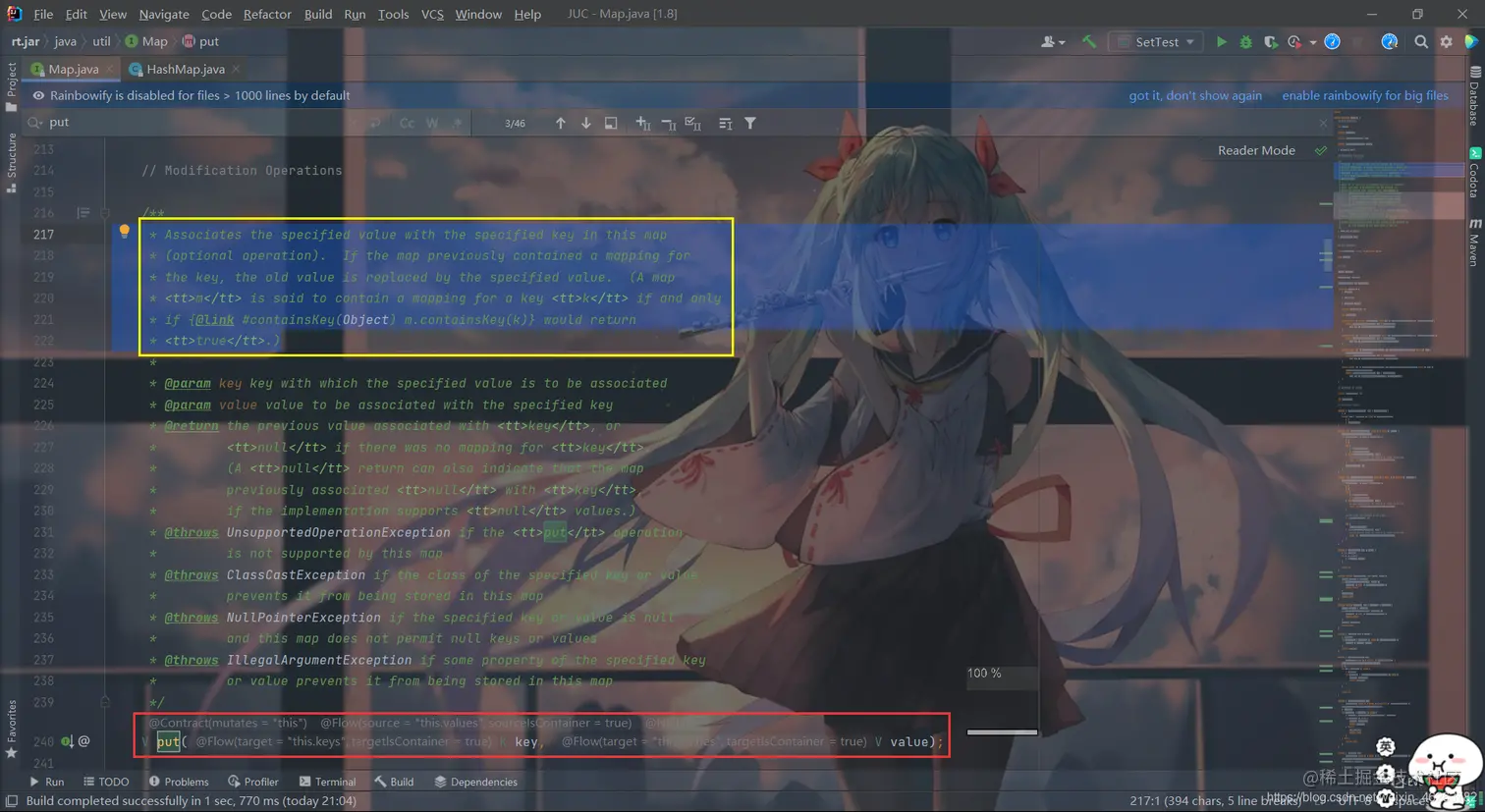 方法输入键值对后,虽然我们只输入了键值对,但他却传递了五个参数,源码注释已经很清楚了,就不多解释了,接下来看到 hash 算法,将键 key 传入,如果 key 为 null