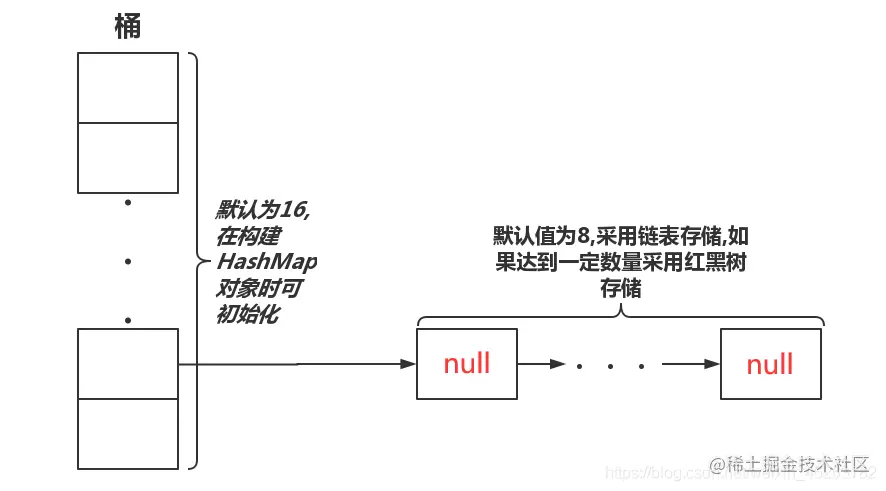 HashMap 是一个用于存储 Key-Value 键值对的集合,每一个键值对也叫做 Entry。HashMap 新增一个元素时,会先计算 key 的 hash 值,找到存入数组(桶)的位置,如果该位置已经有节点(链表头),则存入该节点的最后一个位置(链表尾),所以 HashMap 就是一个数组(桶),数组上每一个元素都是一个节点(节点和所有下一个节点组成一个链表)或者为 null