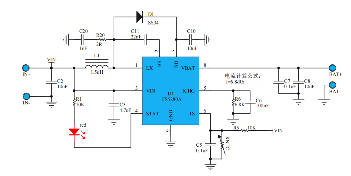 FS5280A是一款支持同步双节串联锂离子电池的升压充电管理芯片,内部集成功率MOS管。充电可达1A电流。FS5280A具有完善的充电保护功能。针对不同的应用场合,芯片可以通过方便地调节外部电阻的阻值来改变充电电流的大小。针对不同种类的适配器,FS5280A芯片内置自适应电流调节环路,智能调节充电电流大小,从而防止充电电流过大而拉挂适配器的现象。该芯片将功率管内置从而实现较少的外围器件并节约系统成本。