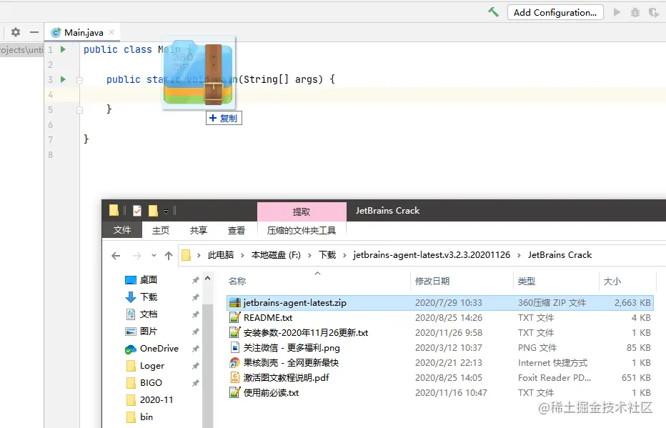 把jetbrains-agent-latest.zip拖到main方法里
