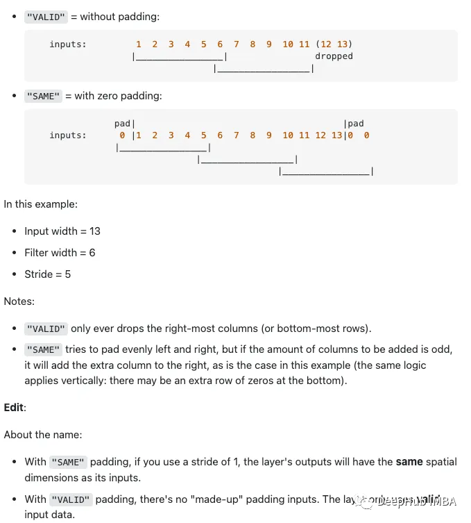 有两种最常见的填充类型:(1)“valid”填充(2)“same”填充,如上图所示。