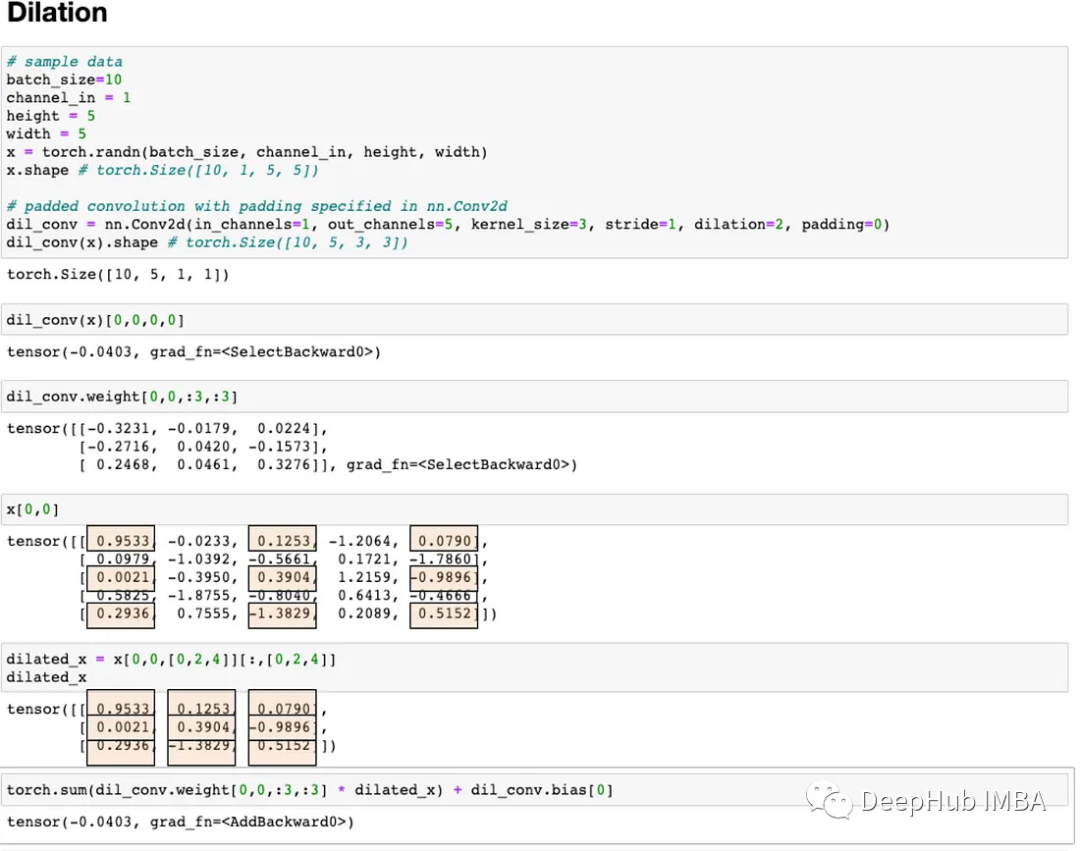pad_conv(x).shape # torch.Size([10, 5, 3, 3])3、扩张 Dilation