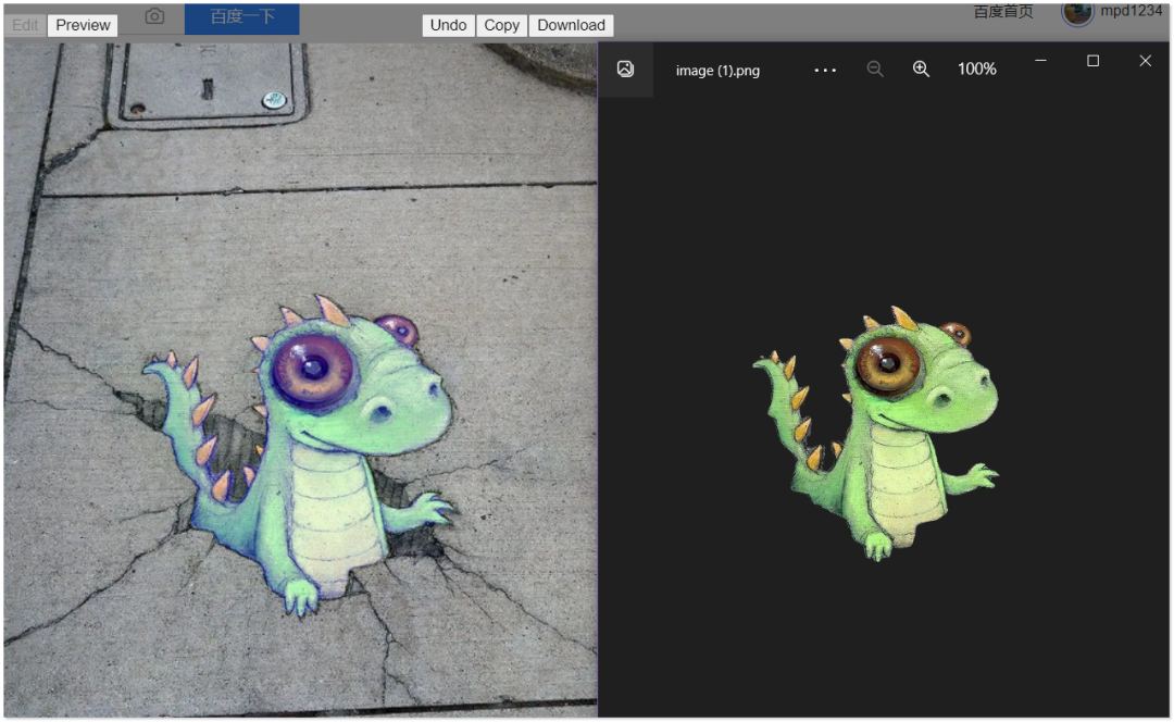 如果你还想把其他的图形一并抠出来,可以用鼠标左键进行多次选择,结合undo按键,直到选择你满意的图像,点击“预览”可以直接查看抠图效果。