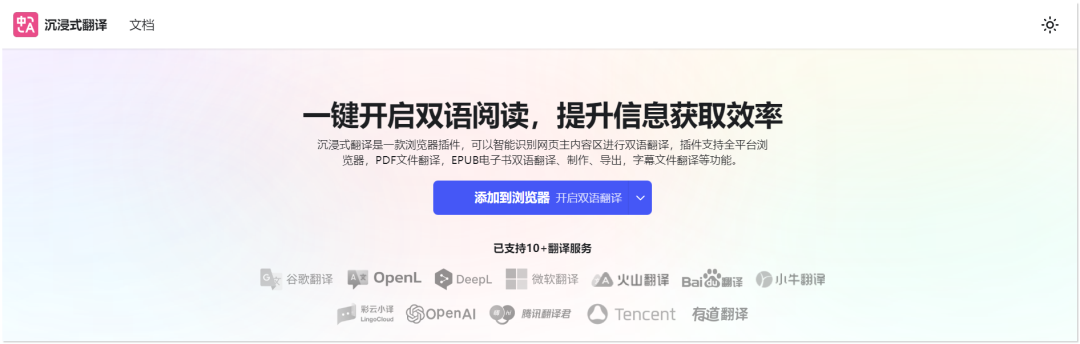 沉浸式阅读外文、导出双语电子书、鼠标悬停翻译、全平台支持等等特性让他在众多的翻译插件中脱颖而出。