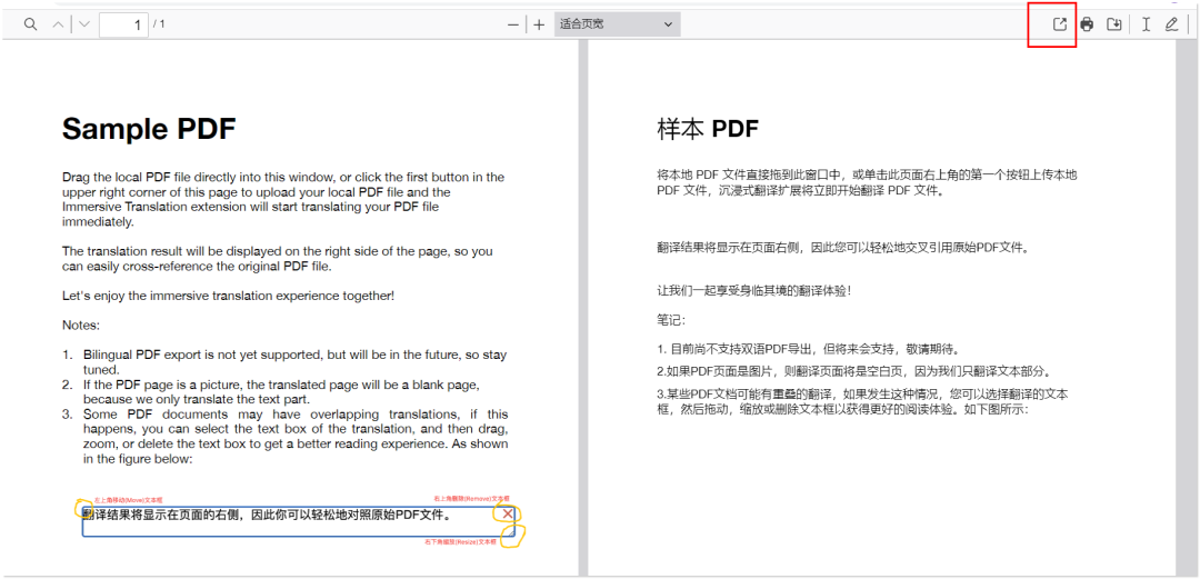 右键点击扩展图标,点击「翻译本地 PDF 文件」),进入页面后,展示PDF翻译的一些使用方法。