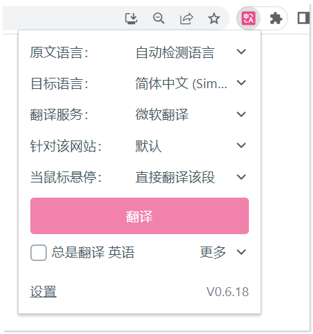 装好后,点击扩展工具栏中的插件图标,直接点击翻译就可以。
