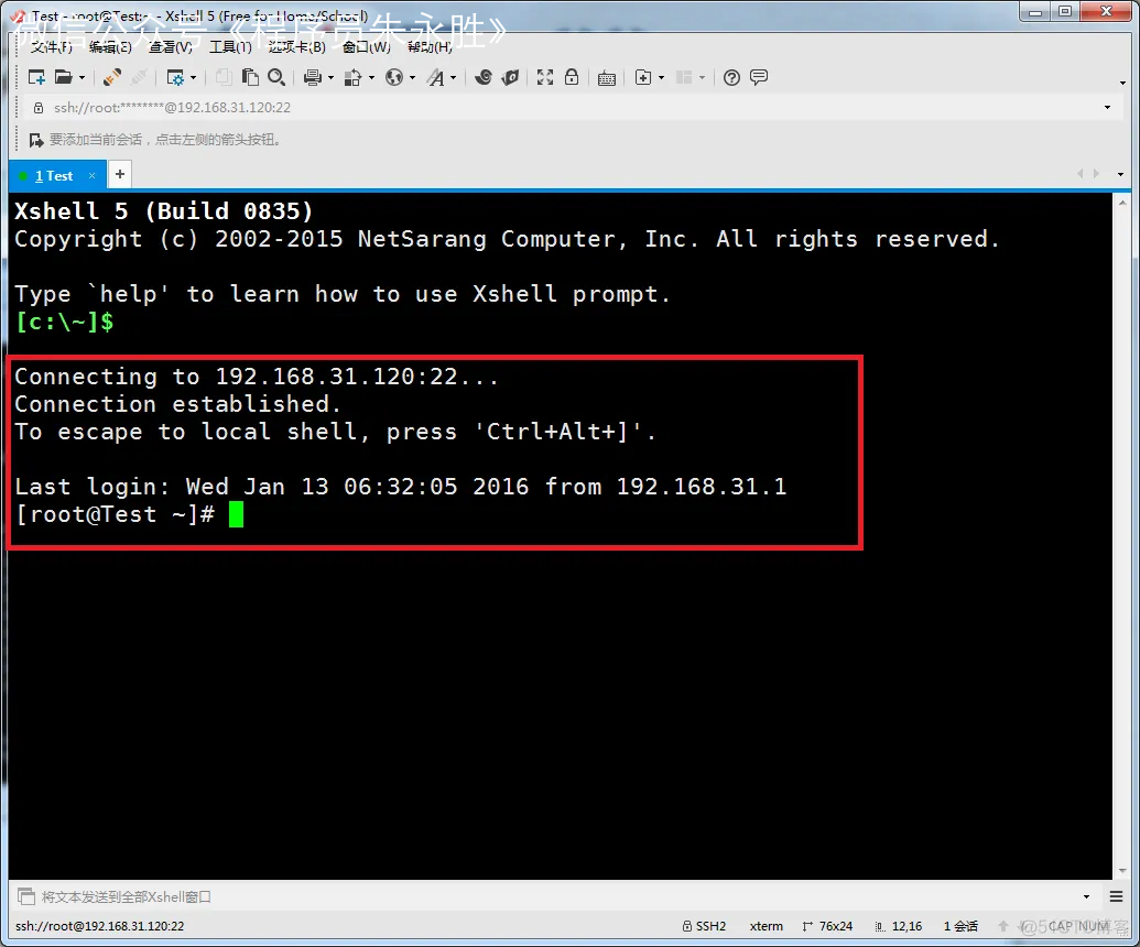 保存退出,然后重启网卡,利用远程工具测试能否与主机通信。