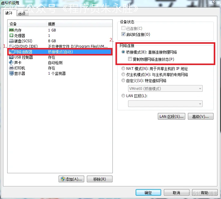 虚拟机网络适配器设置