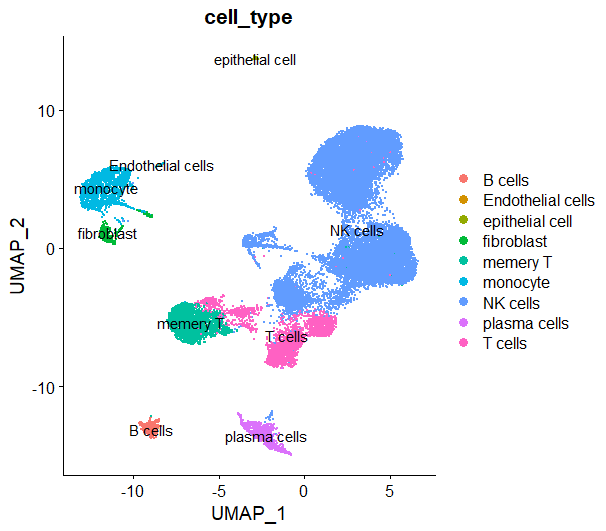 marker[marker$cluster %in% c(14),2] <- 'epithelial cell'