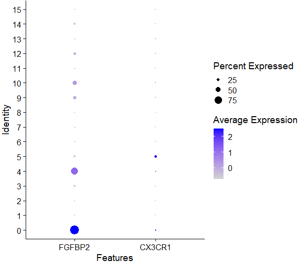 DotPlot(sce,features = c('FGFBP2','FCG3RA','CX3CR1'))