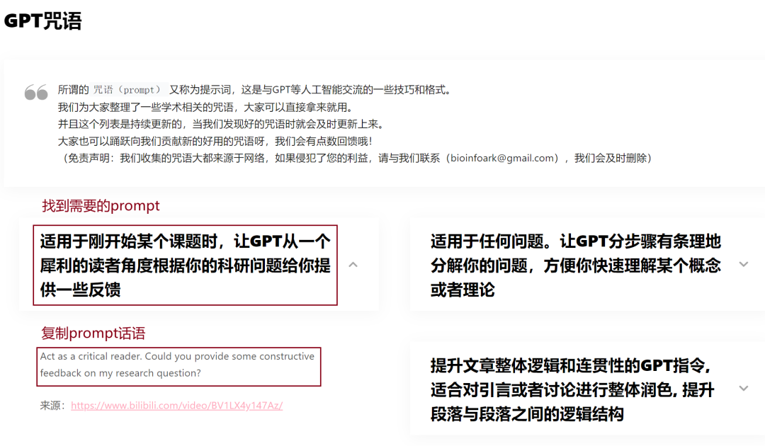 在BioinfoArk里有一栏是专门收集GPT的prompt,也有学术版的一些内置Prompt的介绍