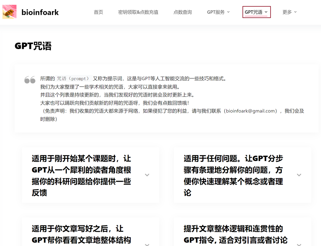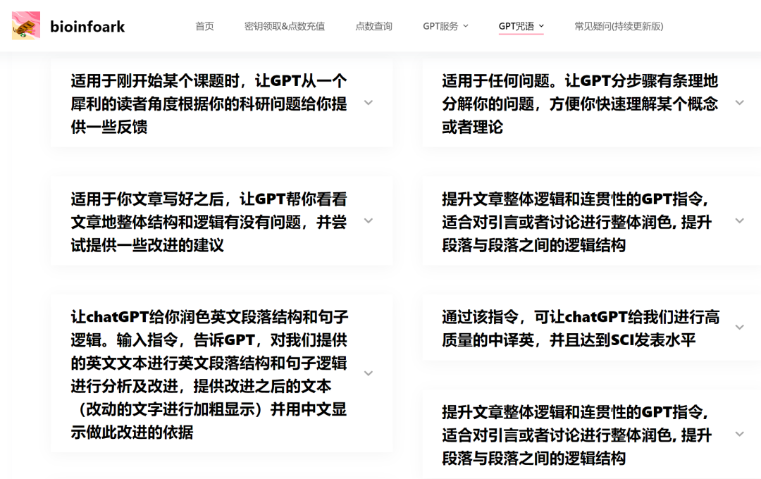 BioinfoArk网站上也收集整理了一些较为好用的Prompt