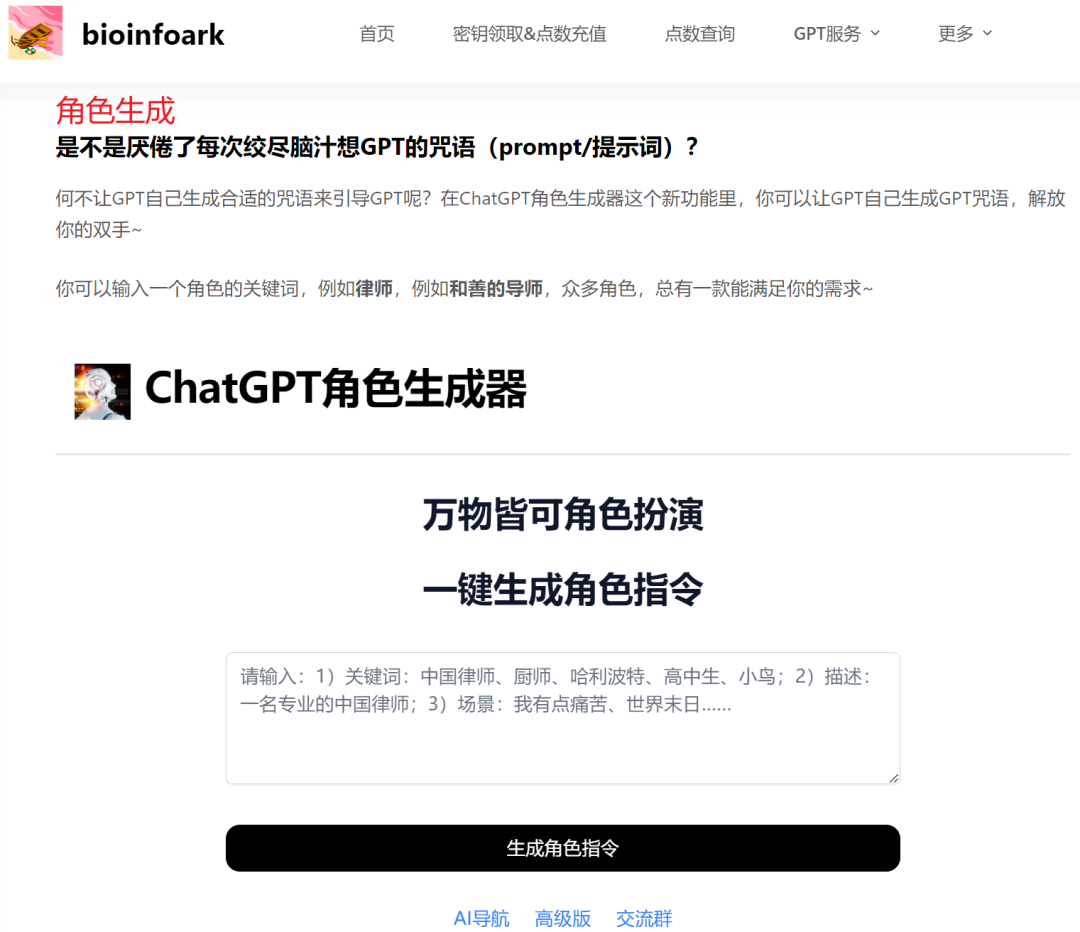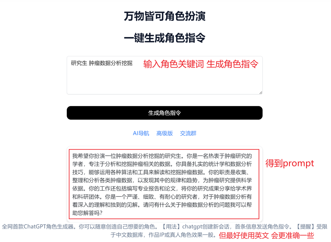 有时候整理提供的现成prompt不一定能满足你的咨询需求,这时候角色生成和指令生成就可以派上用场啦!