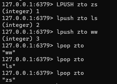 同理如果选择使用LPUSH 和 RPOP,这时候 则先进先出,符合队列原则。