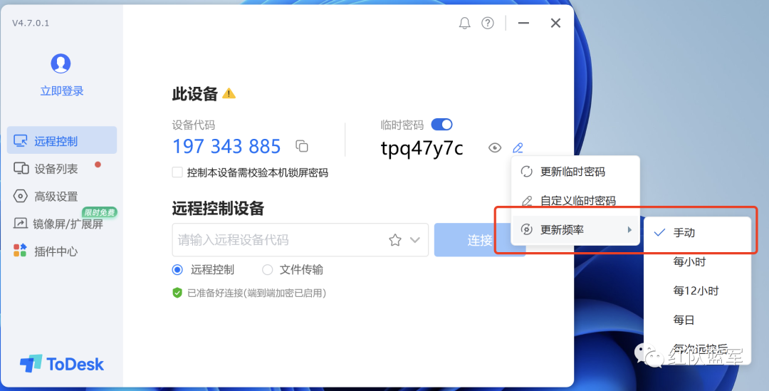 (2)这里打开攻击机的anydesk,牢记我此处勾选的id,然后点击右上角的概述-->为自主访问设置密码-->设置一个密码(这里设置为Q16G666!!)--->之后点击应用,攻击机完全退出anydesk(小托盘也要退出),并且退出时不选择安装anydesk