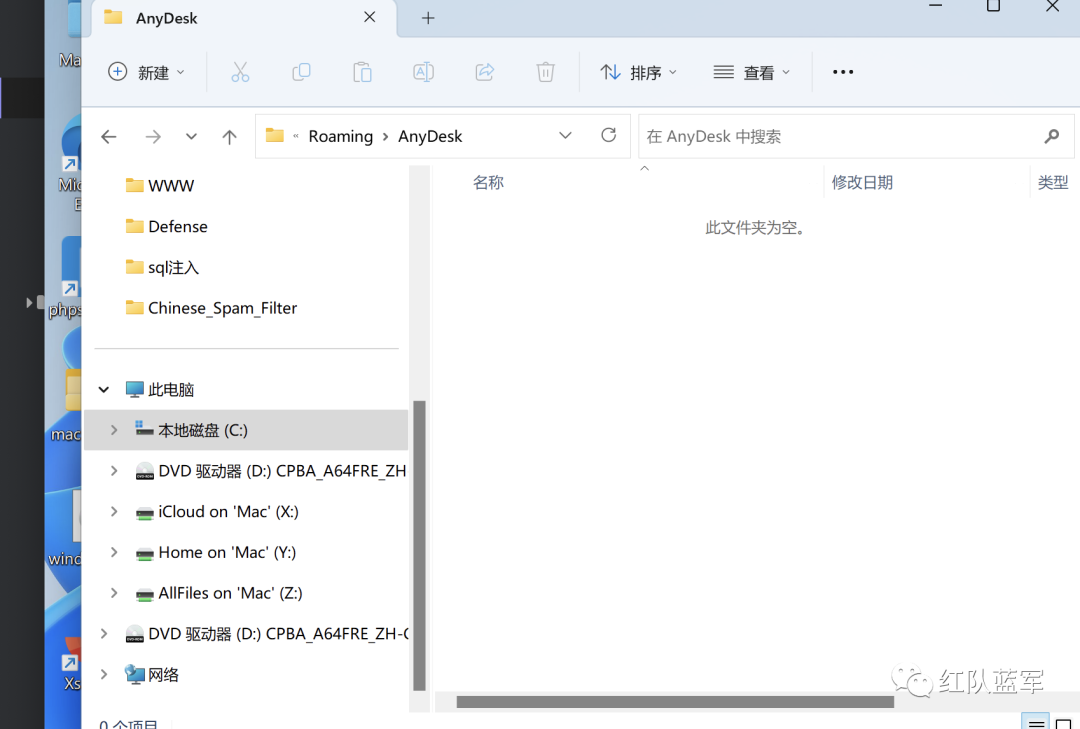 复制下来之后,给受害机的当前用户(拿到权限的用户)找到anydesk配置文件路径并且复制到其他(如果没有配置文件路径则进行创建配置文件路径),一定要注意这里攻击机复制完之后,一定要将攻击机中的配置文件进行删除