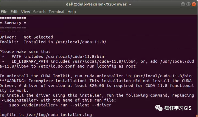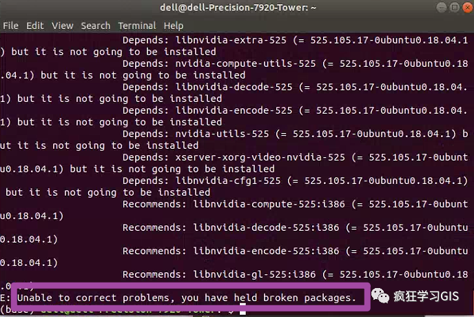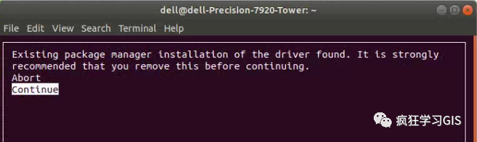 此时,表明我们电脑中原有的NVIDIA驱动程序与新下载的版本有了冲突,导致新的版本无法正常安装。此时,我们需要在终端中,依次输入如下的代码,记得每次输入一行即可。