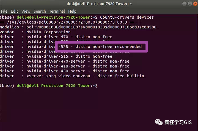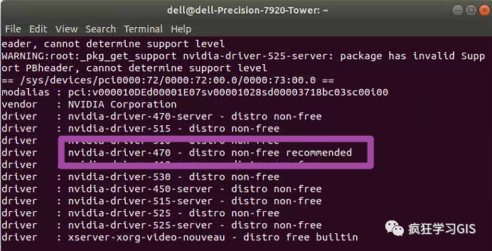 随后,将出现如下图所示的界面;其中,出现recommended的NVIDIA驱动程序版本,就是我们电脑中最合适的版本;大家此时需要记录一下这个版本号,后续需要用到。
