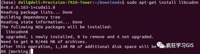 其中,上述代码最后的525就是我们上图中,记录下来的版本号,大家依据自己的实际情况来修改上述代码即可。运行代码后,将出现如下图所示的情况,即这一版本的NVIDIA驱动程序将开始下载与安装。