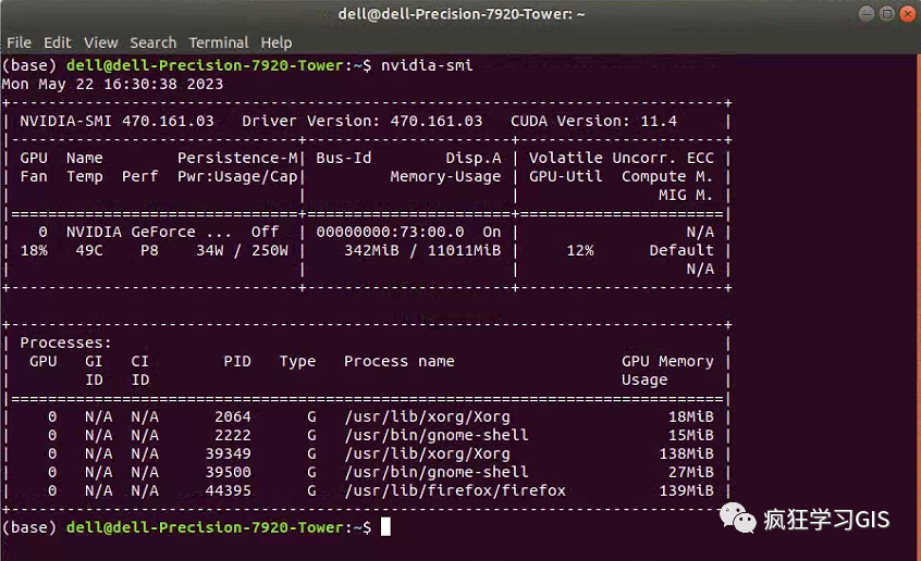 随后,正常情况下应该出现如下图所示的情况。如果大家此时出现的是其他情况,就表明要么没有安装任何NVIDIA驱动程序,要么是安装了NVIDIA驱动程序但是这一驱动的版本有问题。这里我们可以先不管,大家继续往下看即可。