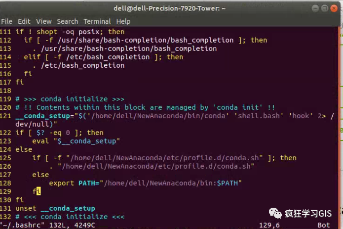 这句代码表示,我们将打开bashrc这一文件,并对其加以编辑,从而实现对环境变量的配置。运行上述代码后,我们将看到类似如下图所示的界面。
